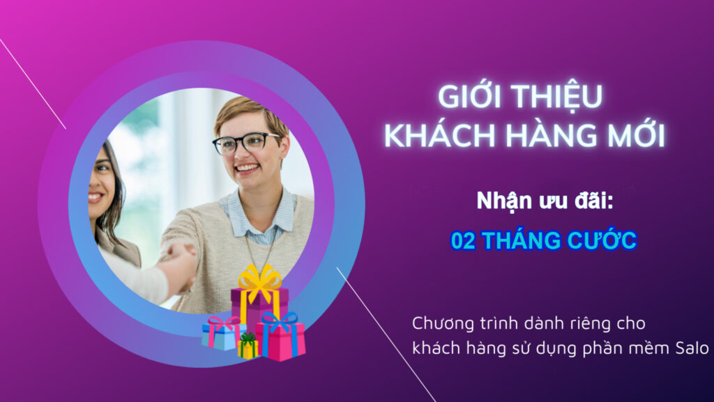 Chương trình “Giới thiệu khách hàng ngay – Nhận khuyến mại tháng liền tay” đã chính thức bắt đầu từ tháng 08 năm 2020. Thể lệ của chương trình vô cùng đơn giản, việc duy nhất bạn cần làm là giới thiệu khách hàng mới sử dụng phần mềm Salo, mọi việc còn lại cứ để Salo hỗ trợ khách hàng. Từ việc tiếp nhận thông tin, tư vấn, chăm sóc , hướng dẫn sử dụng và ký hợp đồng)